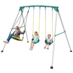 The Heavy-Duty Outdoor Porch Swing Set provides endless outdoor excitement for kids and teens. With three swing seats—including one saucer swing and two EVA belt swings—this versatile set offers thrilling flying fun while also allowing you to easily switch out swings for other attachments. Designed with safety, durability, and easy setup in mind, this swing set is a perfect addition to any backyard.