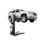 This lift is suitable for indoor and outdoor use, rolling smoothly on a level concrete surface. With a compact column that fits under a 9-foot ceiling, it accommodates most vehicles while providing ample lifting height for easy access.