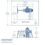 With the Monterey Swing Set, your children get all the charm and fresh air of a summer shore house, along with the added benefits of some classic playset activities that the shore can’t offer. The beautiful upper clubhouse, with its ladder and rock climbing wall entry points, sports a balcony, peaked roof and diamond-shaped peep holes. If you take a ride on the 10’ slide to the lower deck, you’ll enter through a darling little door to find a spacious playhouse with a snack stand, activity table, and built-in bench. Want to end the day by going off-shore and hitting the water? Sail across the waves on the two belt swings or ship’s wheel glider swing. Your perfect day by the sea can be as close as your backyard with the Monterey swing set.