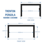 Upgrade your outdoor space with the Backyard Discovery 4.9m x 3.7m Trenton Modern Steel Pergola, a high-performance, all-weather structure designed for strength, style, and functionality. Crafted from premium galvanized steel, this PRO-TECTâ„¢ Tested & Proven pergola endures wind speeds up to 160 km/h, making it one of the sturdiest pergolas available. With a modern black finish, integrated PowerPortâ„¢, and a breathable UV-protected soft shade sail canopy, this pergola offers a perfect blend of durability, elegance, and year-round usability.
