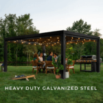 - Powder-coated galvanized steel structure protects against rust, corrosion, chipping, and UV damage.