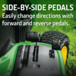 Equipped with a hydrostatic transmission controlled by side-by-side pedals, the S100 provides an infinite range of ground speeds. This intuitive control system allows for smooth, responsive operation in a variety of mowing conditions. - Operator Comfort: