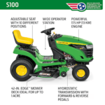 Elevate your lawn care experience with the John Deere S100—a machine where innovation meets practicality for an outstanding mowing performance every time.