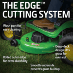 - The 42-inch Edge Mower Deck is engineered for a deep, even cut with a smooth underside that minimizes grass buildup.