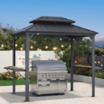 Enhance your outdoor grilling experience with the PURPLE LEAF 6′ x 8′ Hardtop BBQ Gazebo, designed for year-round durability, convenience, and protection. Featuring a double-tier galvanized steel roof, a sturdy aluminum frame, and integrated storage shelves, this modern grill shelter provides an ideal shaded space for barbecues, patio gatherings, and backyard cooking.