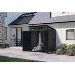 The Suncast 6 ft. x 5 ft. Modernist Storage Shed is a stylish, durable, and functional solution for outdoor storage. Its modern design, robust construction, and ample storage space make it an excellent choice for homeowners looking to organize their outdoor belongings efficiently. Whether you need to store gardening tools, bicycles, or seasonal equipment, this shed provides a secure and visually appealing storage option.