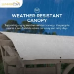 - Weather-resistant Canopy: With premium Cedar wood frame construction supporting a light gray sling fabric canopy, the pergola creates a comfortable retreat on the hottest sunny days.