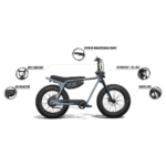 - Tires & Tubes: Outfitted with Trooper tires measuring 4 inches on both the front and rear, along with 20″ x 4″ inner tubes, this e-bike is built to provide exceptional grip and performance on a variety of surfaces.