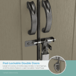 - Space-efficient 7′ x 7′ footprint maximizes storage capacity without taking up too much yard space.