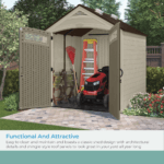 Upgrade your outdoor storage solution with the Suncast 7′ x 7′ Resin Outdoor Storage Shed—a secure, space-saving, and weather-resistant addition to your backyard!